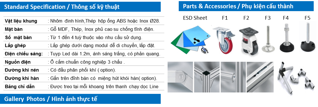 Để được thiết kế và báo giá các loại bàn thao tác, bàn kiểm tra công đoạn ( Test Desk, Test Line ) hoặc tư vấn các giải pháp về bàn thao tác cho nhà máy tại Hà Nội, Bắc Ninh, Hải Phòng, Hải Dương, Thái Nguyên,…và các tỉnh lân cận vui lòng liên hệ Mobile/Zalo: 0867589180 để được trợ giúp nhanh nhất.